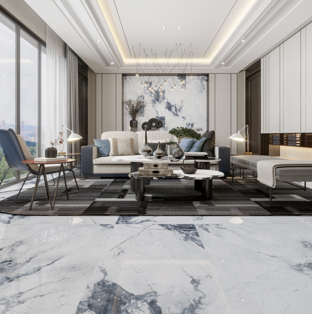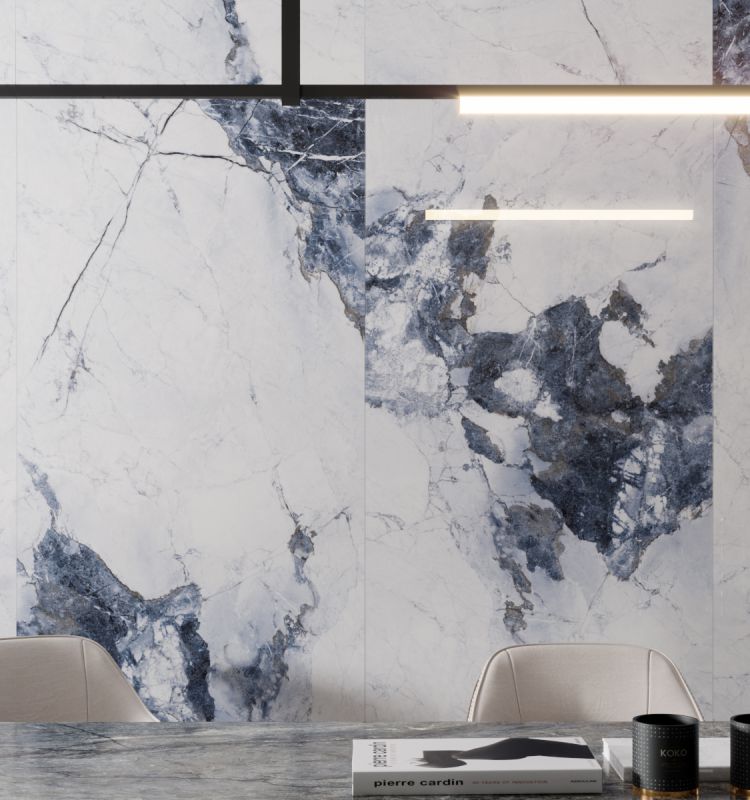 在上世紀90年代,我國云南玉龍雪山冰川——“白水一號”冰川曾形成一種珍貴的萬雪藍峰景象,整個冰川,在陽光照射下,綻發藍光,猶如幽藍碧玉鑲嵌在千米冰峰之中,非常罕見;隨著全球氣候變暖,這一景象已近消失,亞細亞本款產品,正取自該獨特氣候現象,將這一奇珍景象完美復刻至產品中,湛藍冰峰,游走于純白肌底上,配合亞細亞二次布料斑點胚工藝,使得該產品具備更加藝術化通體效果,玉龍雪山壯美景象油然而生,適合現代簡約等風格。