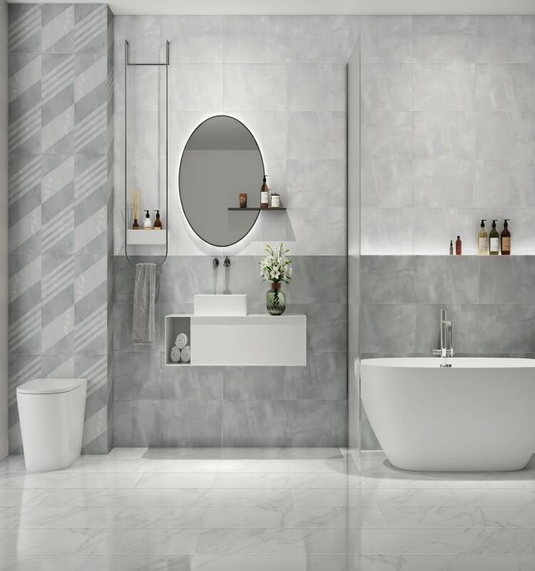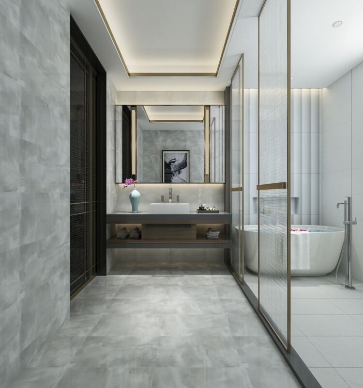 擻取江南春雨霧朦朧的煙灰色調, 配合磚面自由隨意的肌理感和濃淡相宜的層次, 宛如江南水墨畫—般,空蒙飄逸,遼遠幻美。